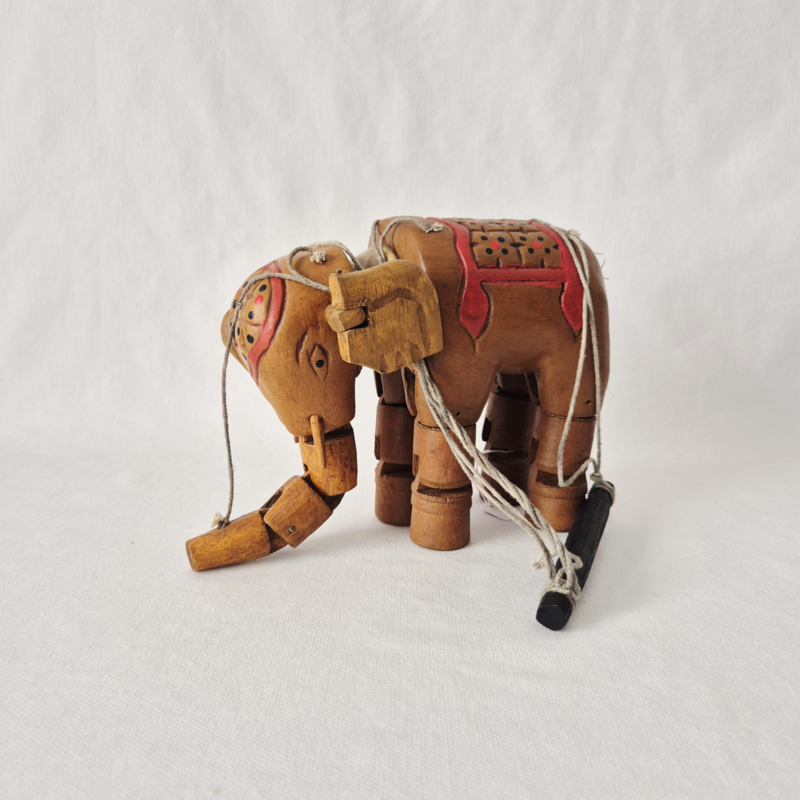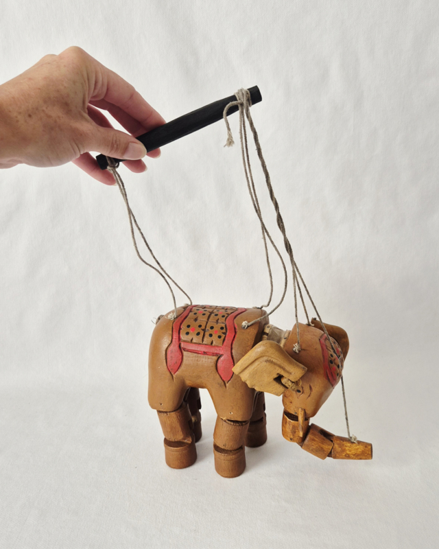 OverzichtPrachtige marionet in de vorm van een olifant. Deze poppen worden traditioneel gebruikt in voorstellingen en verhalen.