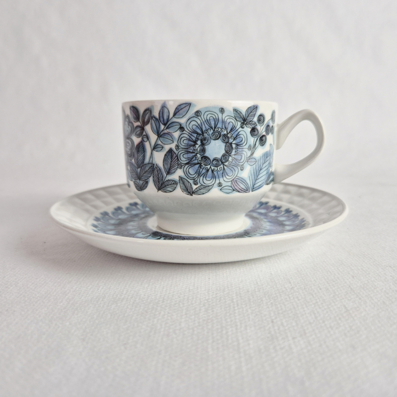 OverzichtSet van 4 vintage kop en schotels uit de Castillian Collection – Toledo van Pontesa Ironstone. Deze elegante set is gemaakt van hoogwaardig Spaans aardewerk met een prachtig, klassiek blauw motief op wit. De verfijnde decoratie en het tijdloze design maken dit servies perfect voor dagelijks gebruik of een stijlvolle koffietafel.