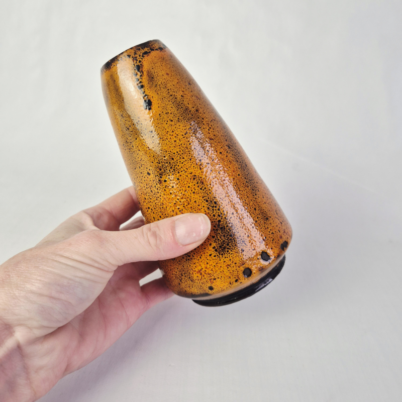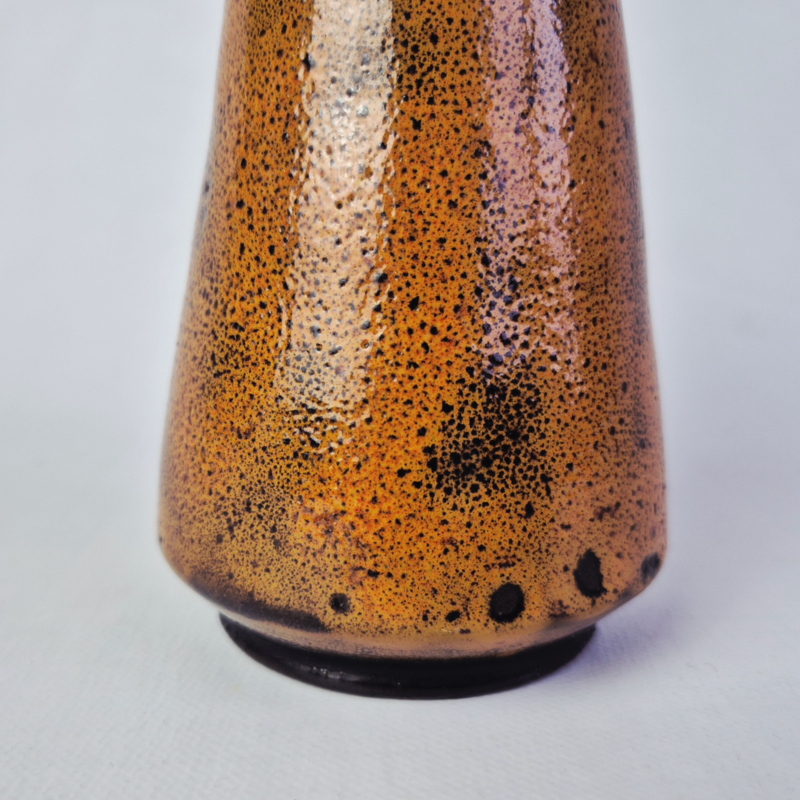 OverzichtPrachtig vaasje uit de jaren 70, keramiek met Fat lava glazuurtechniek. De vaas heeft een mooie lijn en is een echte eyecatcher in het interieur.
