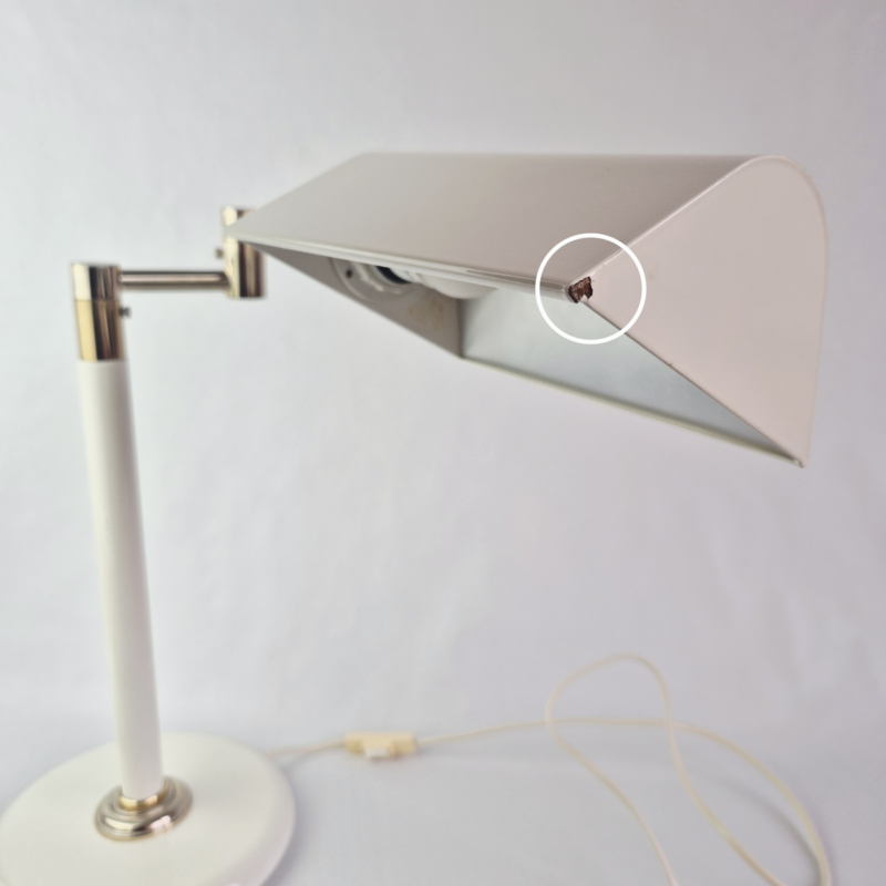 ✔ Staat: De lamp heeft lichte gebruikssporen passend bij de leeftijd: bekijk de foto's om een juiste indruk van de staat van de lamp te krijgen. Aan 1 hoekje van de kap is de verf beschadigd.
