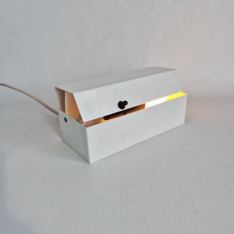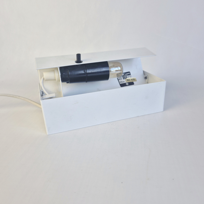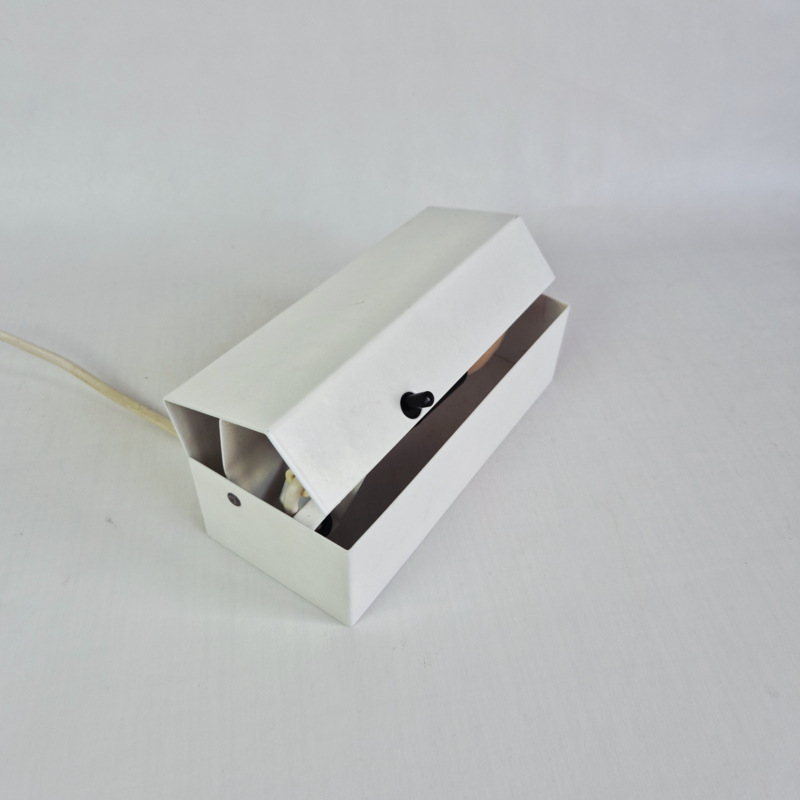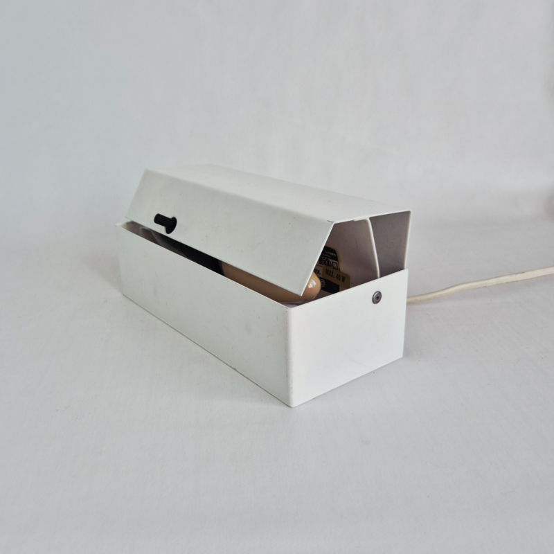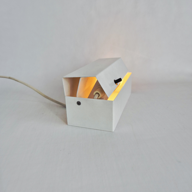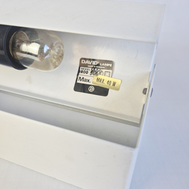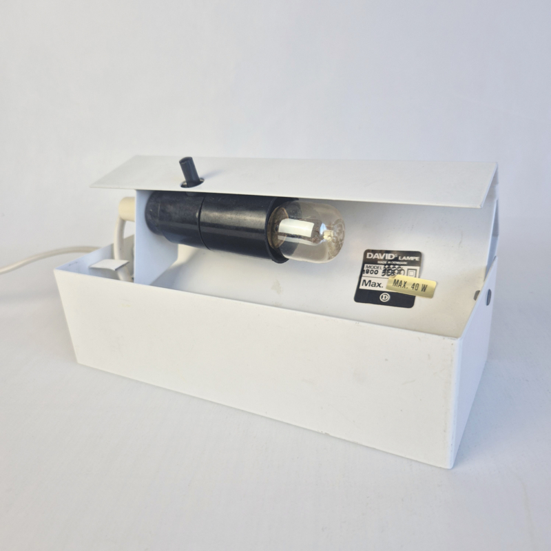 OverzichtOriginele David’s Lamp Model 1800 tafellamp uit Denemarken. Deze minimalistische lamp heeft een strak wit metalen ontwerp met een subtiele zwarte schakelaar en een verstelbare kap. Het functionele en eenvoudige design is typisch voor Scandinavisch mid-century modern design.