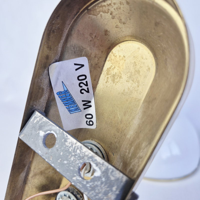 OverzichtStijlvolle vintage wandlamp van Kemner met een elegante combinatie van messing en een witte glazen kap. De verstelbare arm geeft de lamp een functioneel én decoratief karakter – perfect als leeslamp of sfeerverlichting.