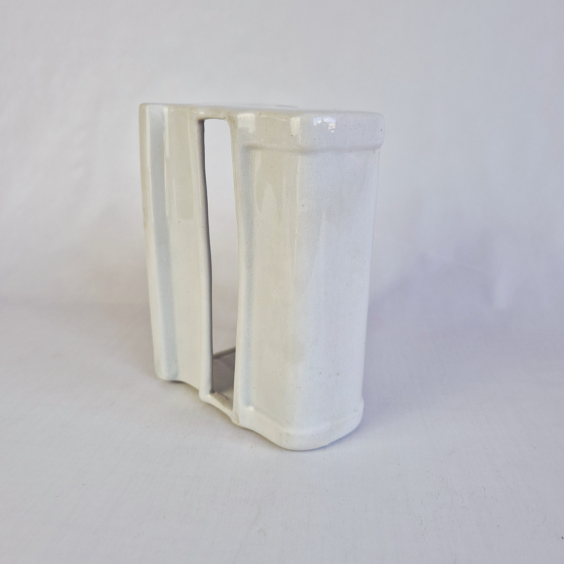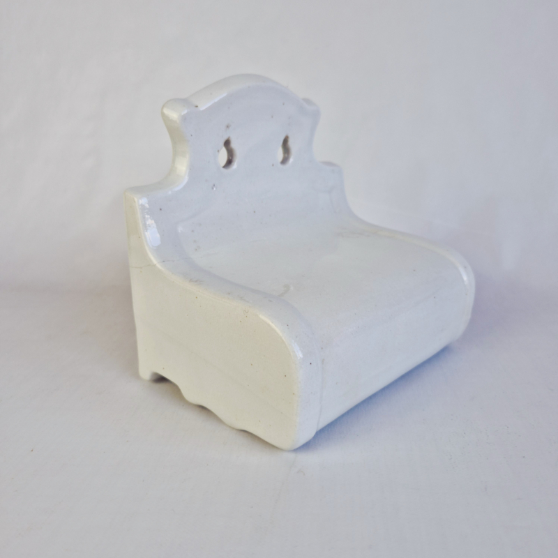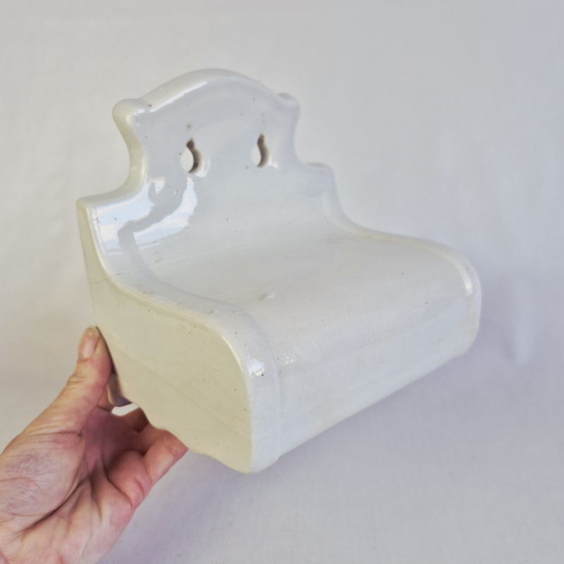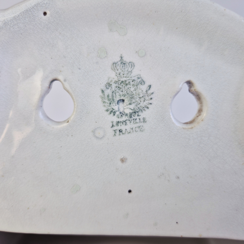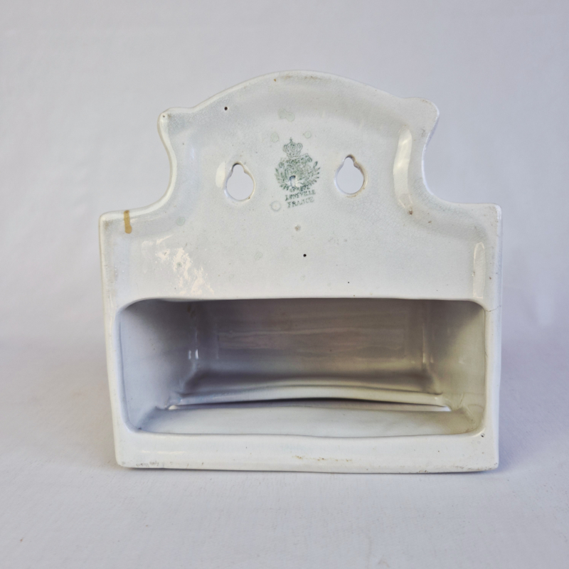 OverzichtGeweldige antieke toiletpapierhouder van wit keramiek en gemerkt Lunéville France.