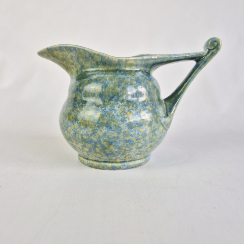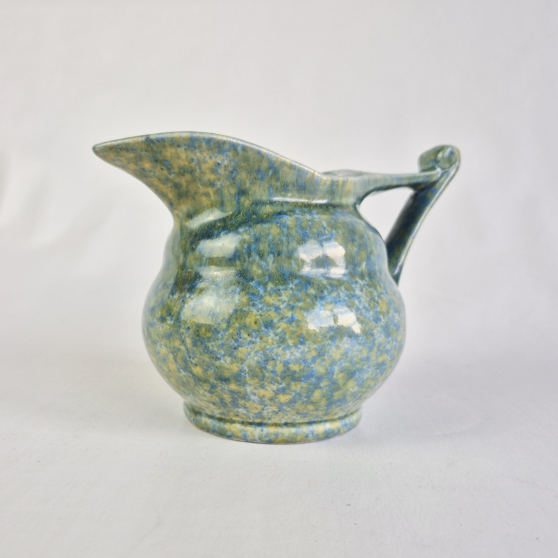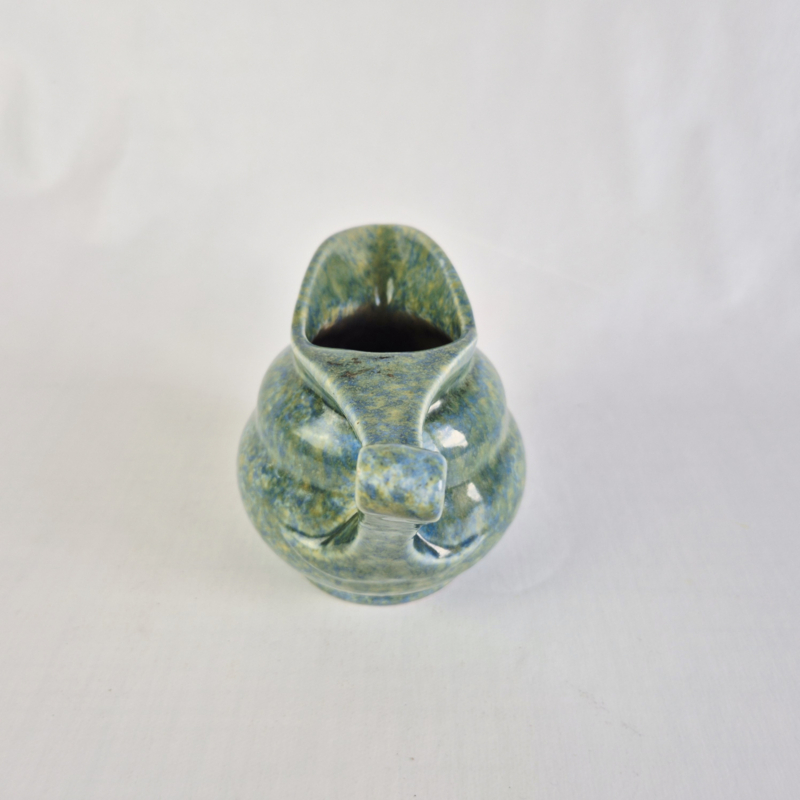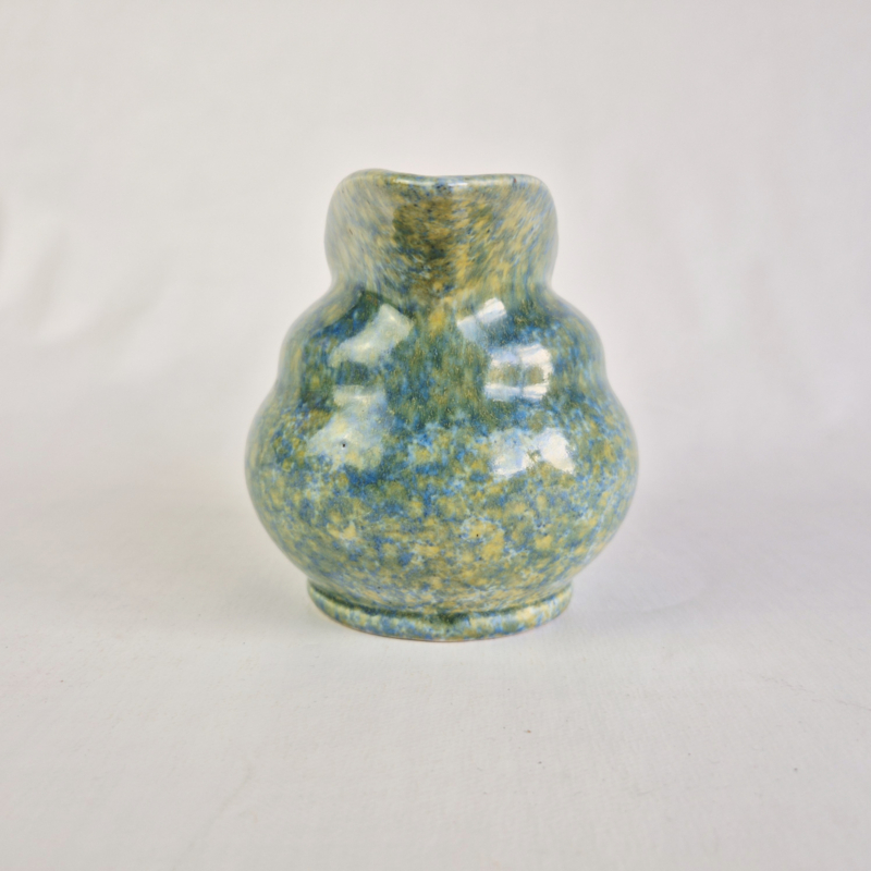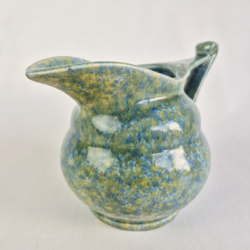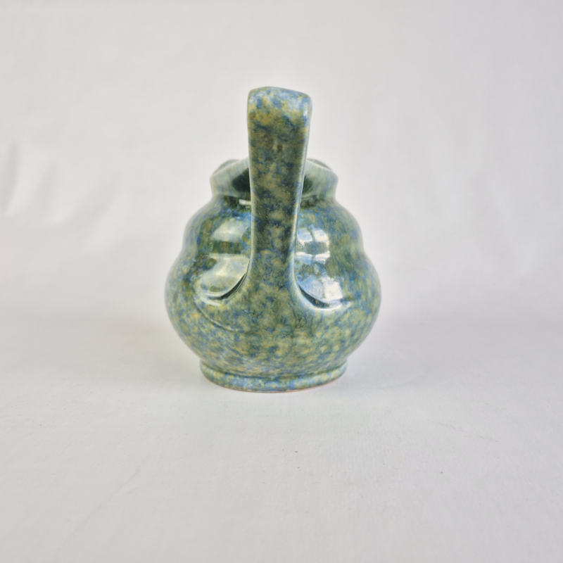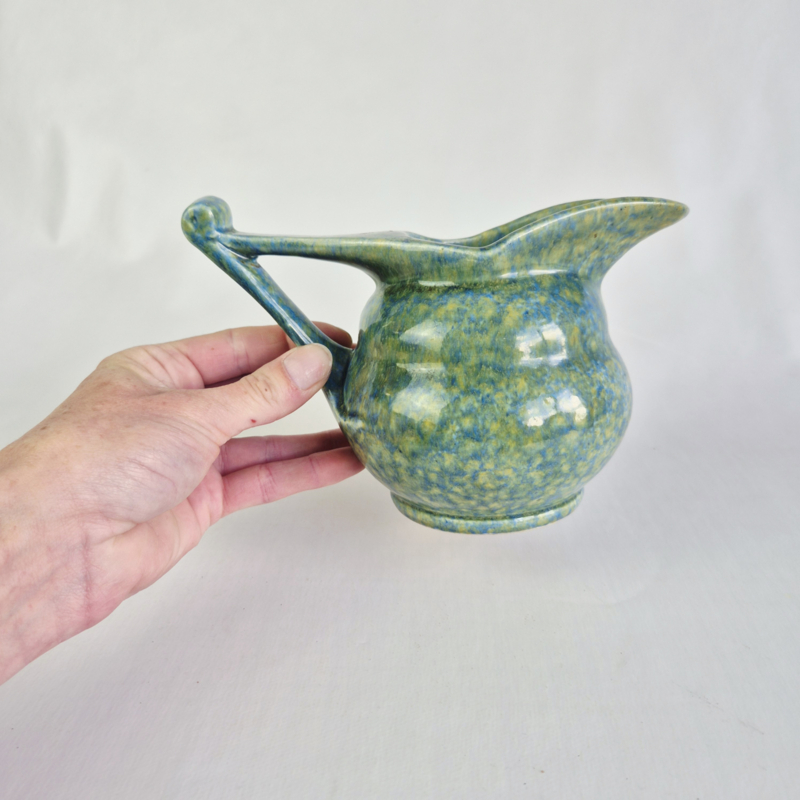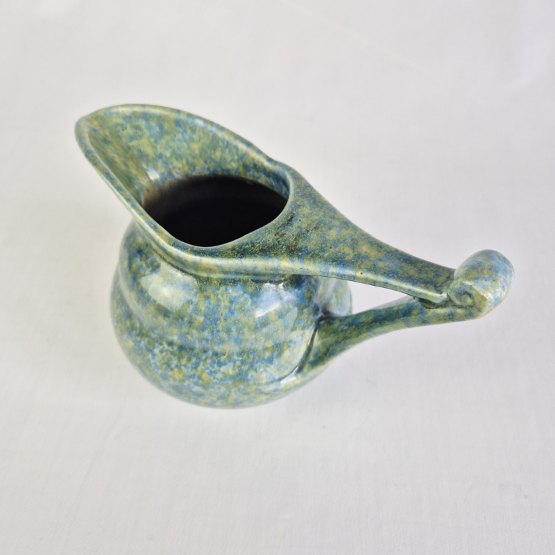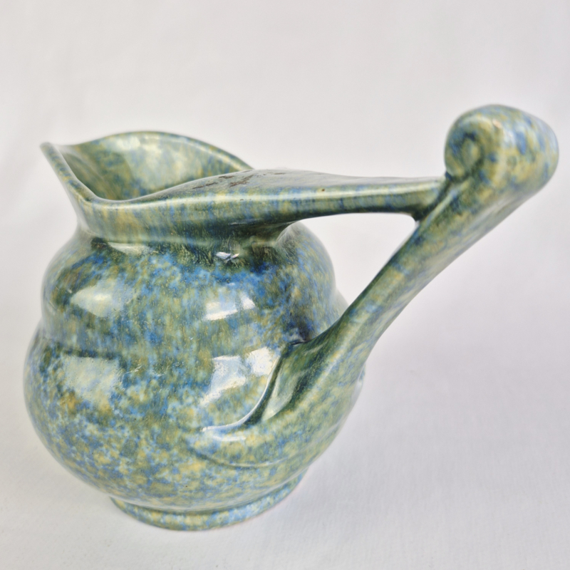 OverzichtPrachtige snavelkan van Ed Antheunis, met geel, blauw, groen glazuur.