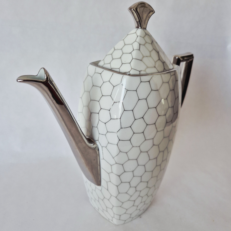 OverzichtPrachtige en bijzondere theekan van porselein, Limoges. Handgeschilderd porselein.