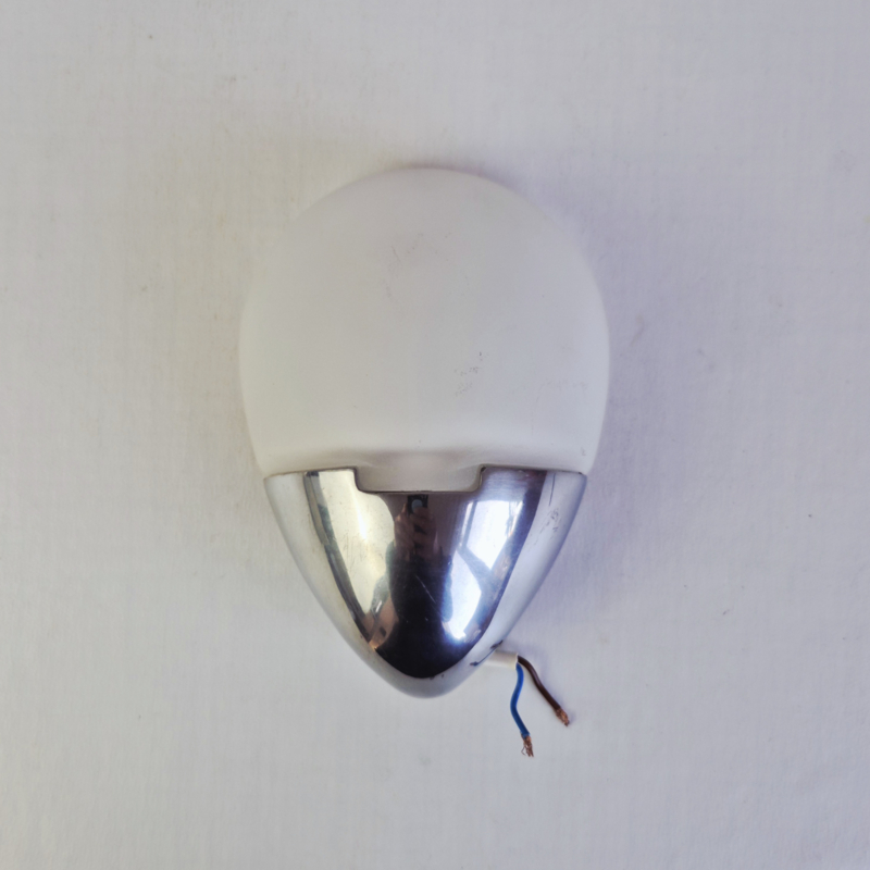 LG Paris Vintage WandlampOriginele vintage wandlamp van LG Paris in een strak space age ontwerp. Deze lamp combineert een matte wit glazen kap met een glanzende chromen basis, typisch voor Frans design uit de jaren 70.