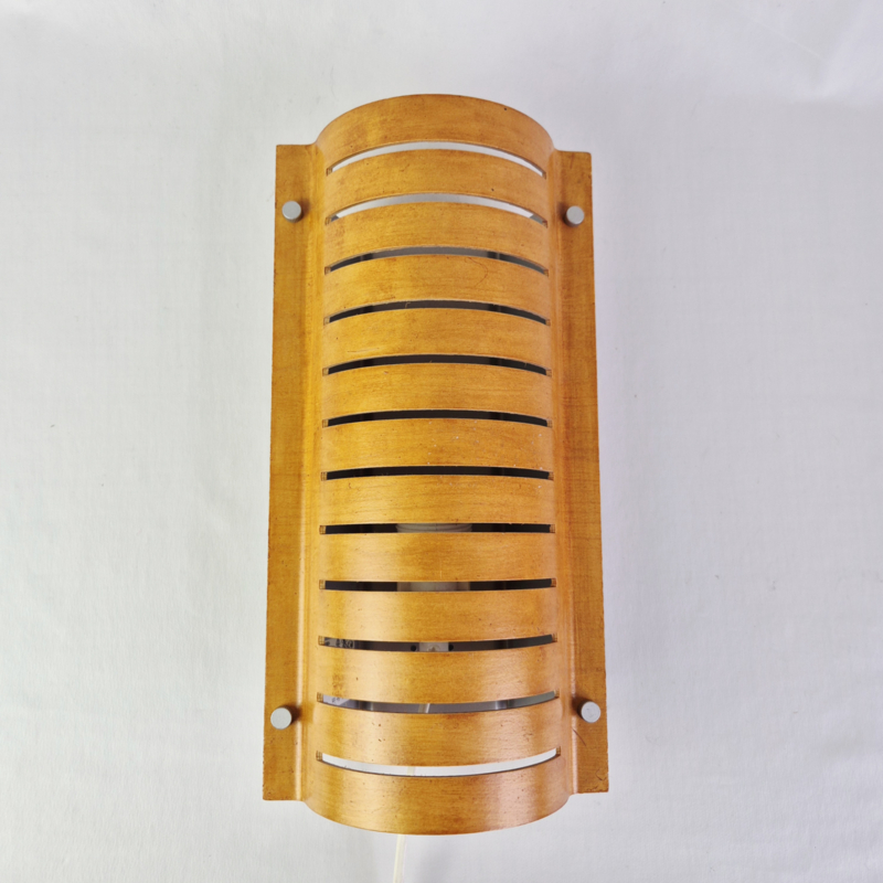 IKEA Strimma wandlampOriginele IKEA Strimma wandlamp, een iconisch voorbeeld van Scandinavisch design uit de jaren 80. Deze vintage wandlamp heeft een karakteristieke gebogen houten kap, die zorgt voor een warm en sfeervol lichtspel op de muur.