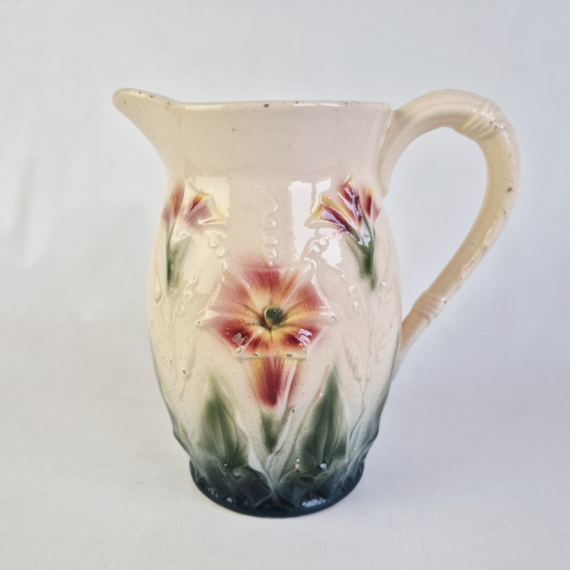 Pichet Barbotine | Vintage Franse Majolica KanVintage Pichet Barbotine, een Franse majolica kan die waarschijnlijk is geproduceerd door de St. Clément aardewerkfabriek. Prachtige Barbotine kan (pitcher) met bloemmotief, uitgevoerd in traditioneel Frans majolica uit de 19e of…