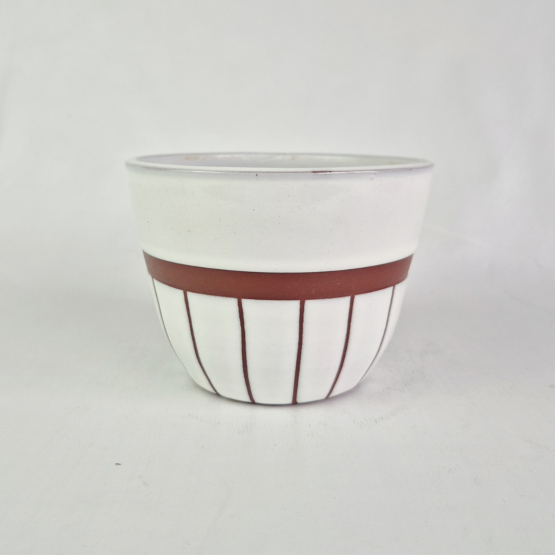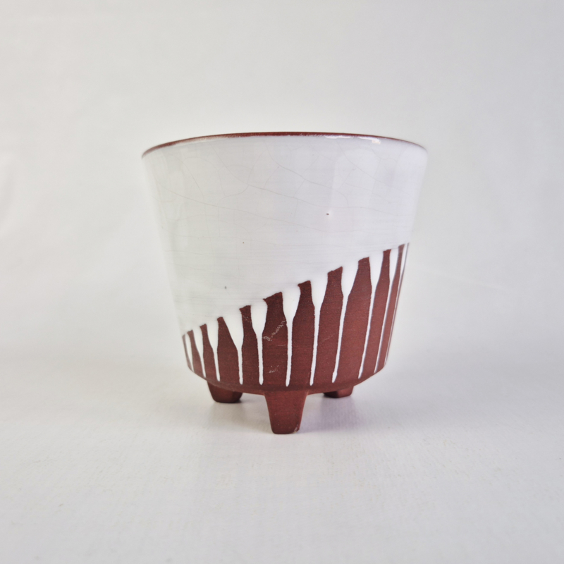 Jaren 60 Bloempot op PootjesOntzettend leuke bloempot van rode klei met witte glazuur en op 3 pootjes.