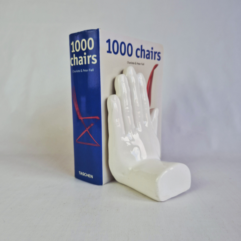 Boekensteun uit de Jaren 80 in de Vorm van een HandHeel leuke boekensteun, jaren 80, in de vorm van een hand. De hand is oorspronkelijk bedoeld als boekensteun, maar is ook geweldig als zeephouder, of bijvoorbeeld met een hangplant erop. Verwijder de stop aan de onderkant en hang…