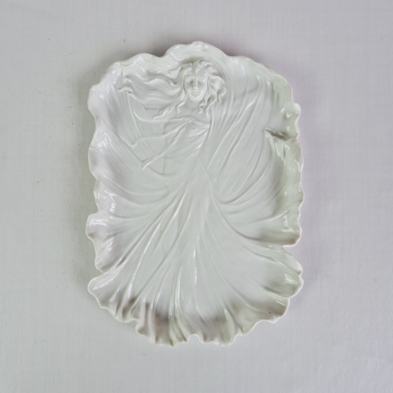 Art Nouveau Tettau ServeerschaalPrachtige vintage Tettau "Anbietschale" (serveerschaal) of decoratief dienblad, vervaardigd uit wit porselein in Art Nouveau-stijl. Het stuk is ontworpen als een reliëf en kan ook worden gebruikt als sieradenschaal of als…