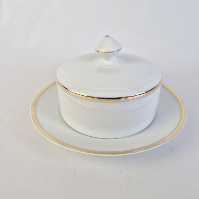 Vintage MCP Czechoslovakia BotervlootVintage botervloot van wit porselein met subtiele gouden randjes. Onderop gemerkt met MCP Czechoslovakia